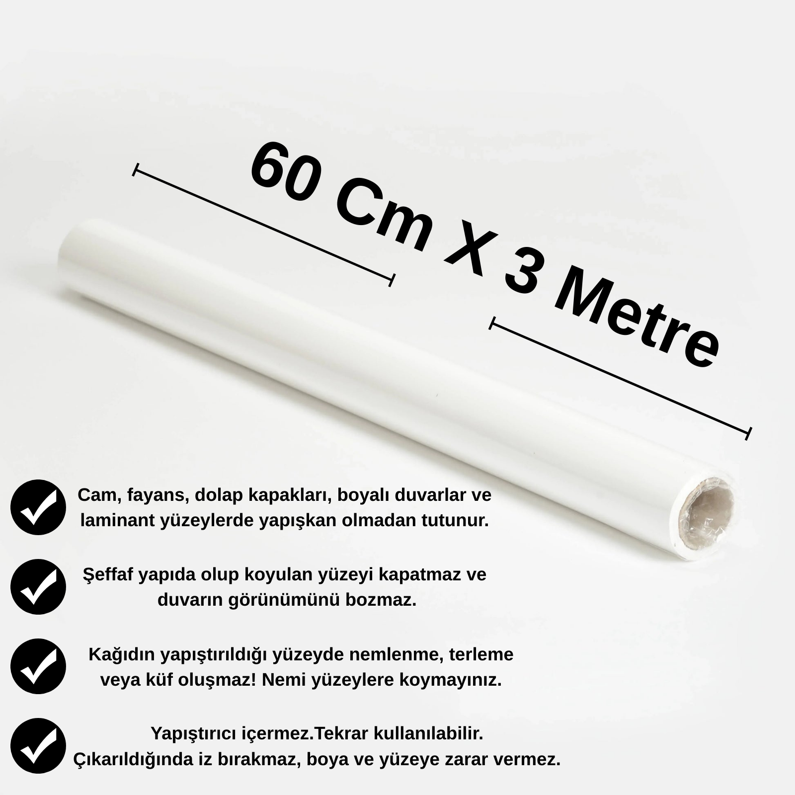 Fırat İ. 1 Şubat 2026Doğrulanmış AlıcıBeklediğimden Çok Daha İyiYapıştırıcısız nasıl tutunur diye şüpheyle almıştım ama resmen duvara vakumlanıyor. İçinden çıkan rulo baya uzun, ihtiyacım kadar kesip her odaya birer tane yaptım