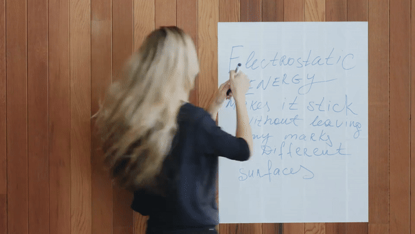 Elektrostatik enerji kullanarak herhangi bir pürüzsüz yüzeye yapışır, yani yapıştırıcı, bant veya delme gerektirmez.